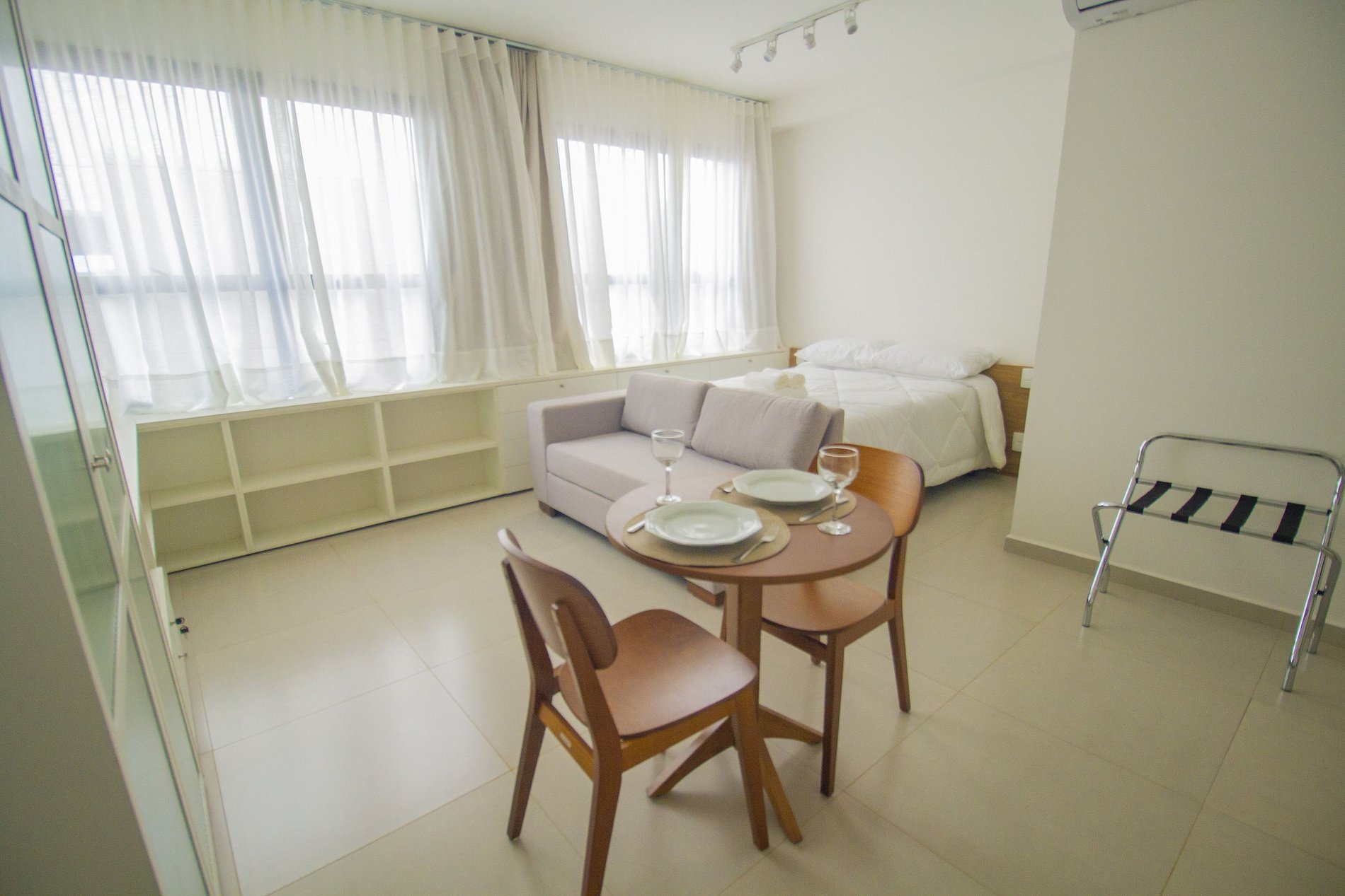 - 1 cama casal e um sofá-cama, que vira a segunda cama de casal (comporta até 4 pessoas)