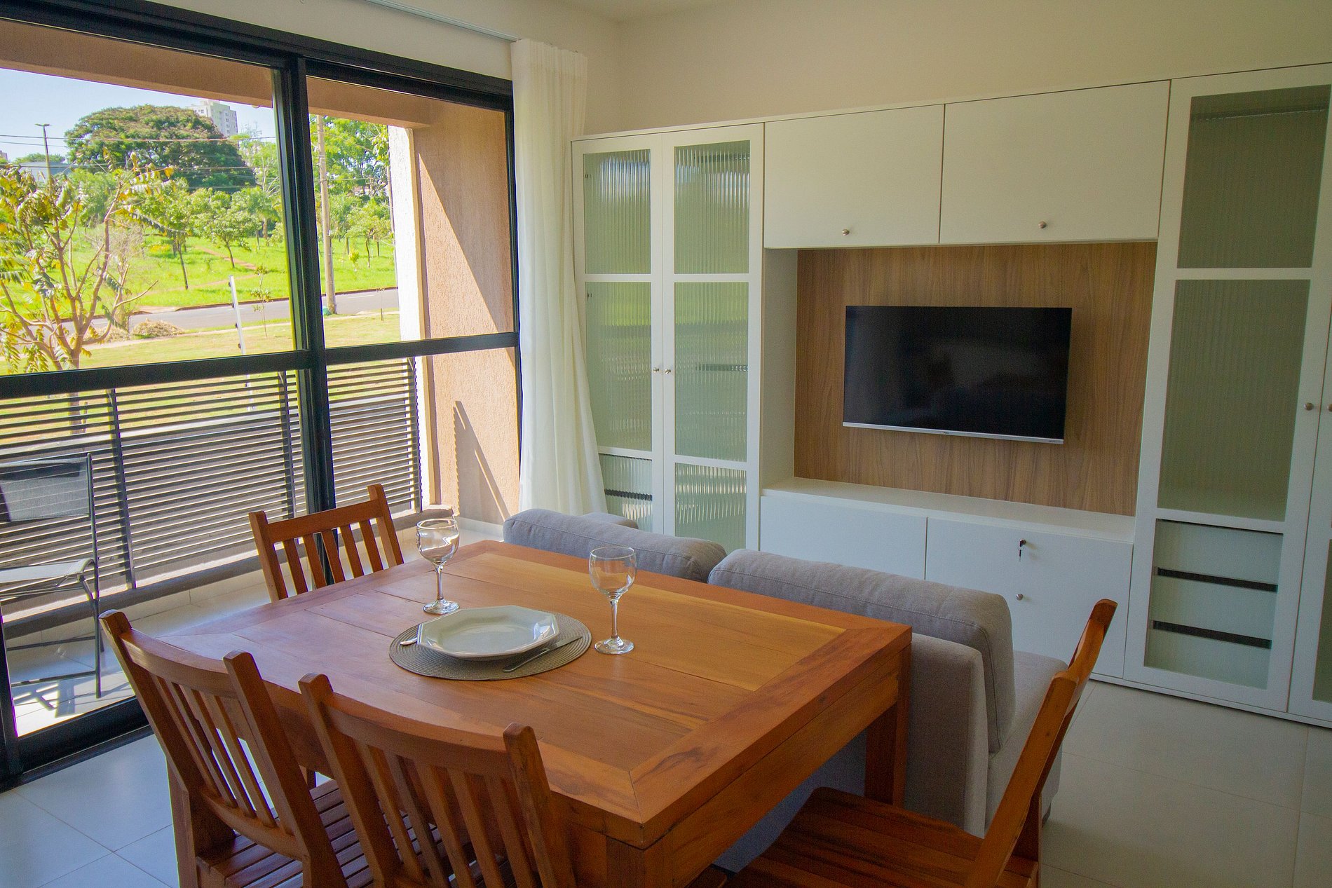 Flat com Sacada, Vista, Ar, Garagem, Piscina, WiFi