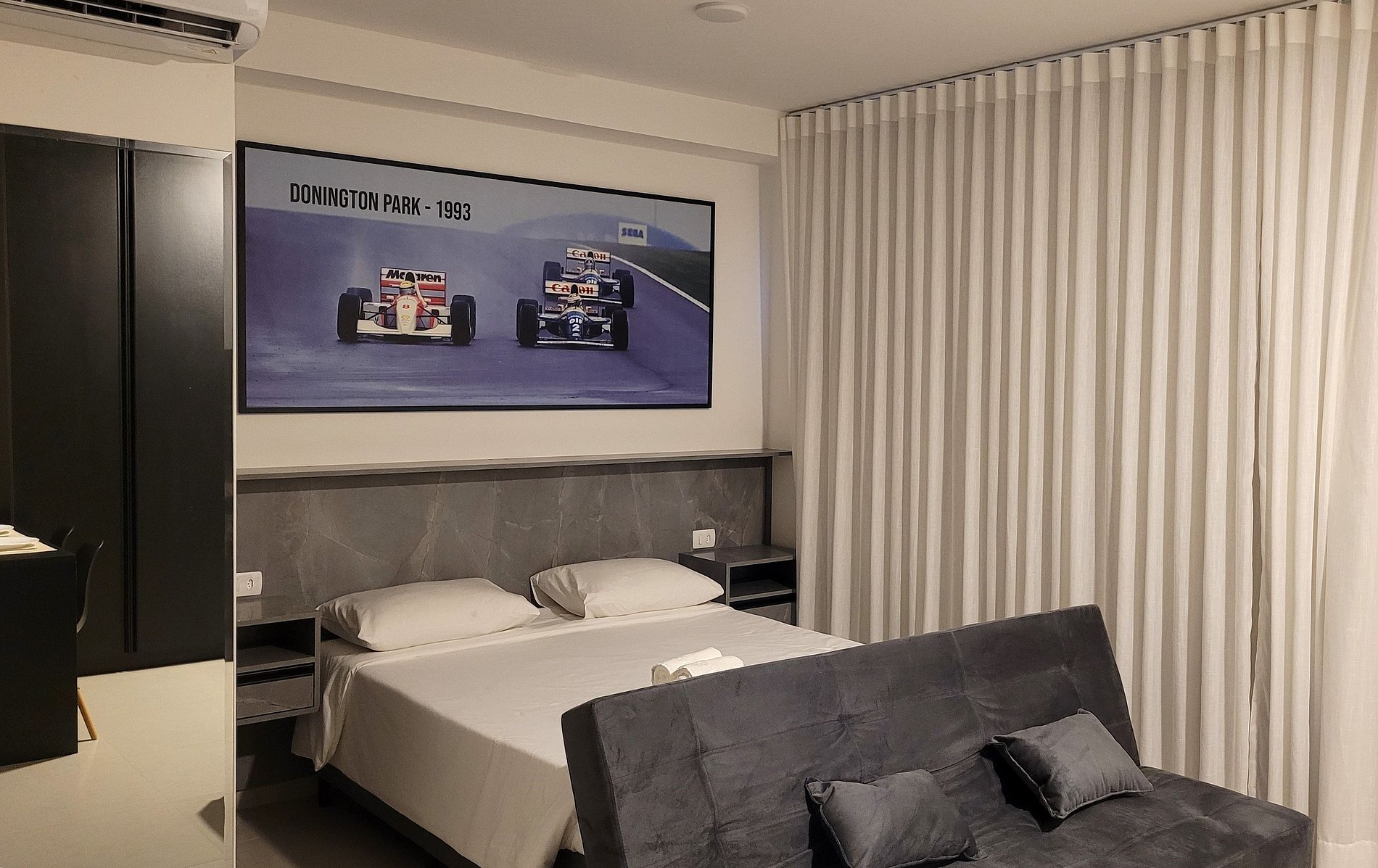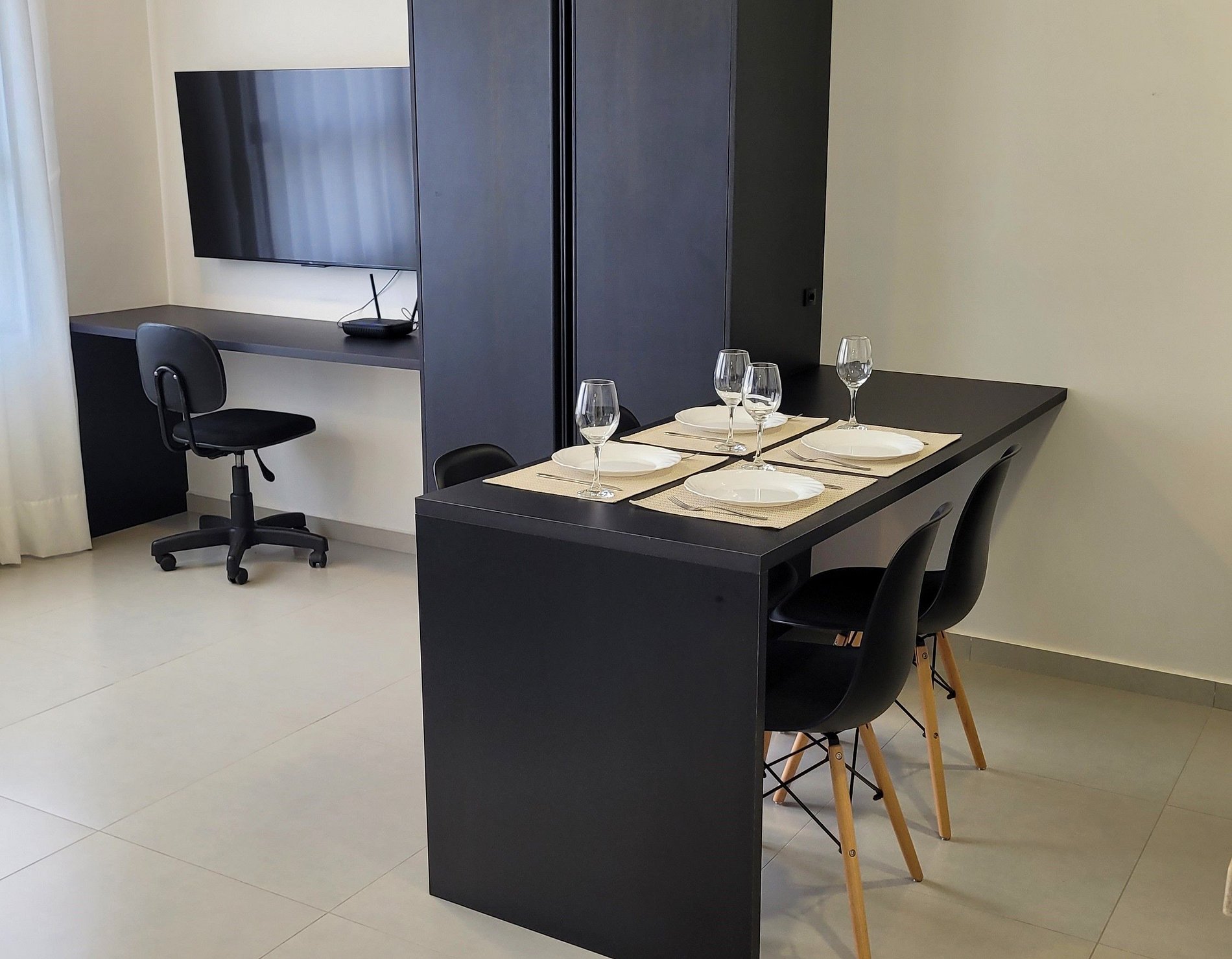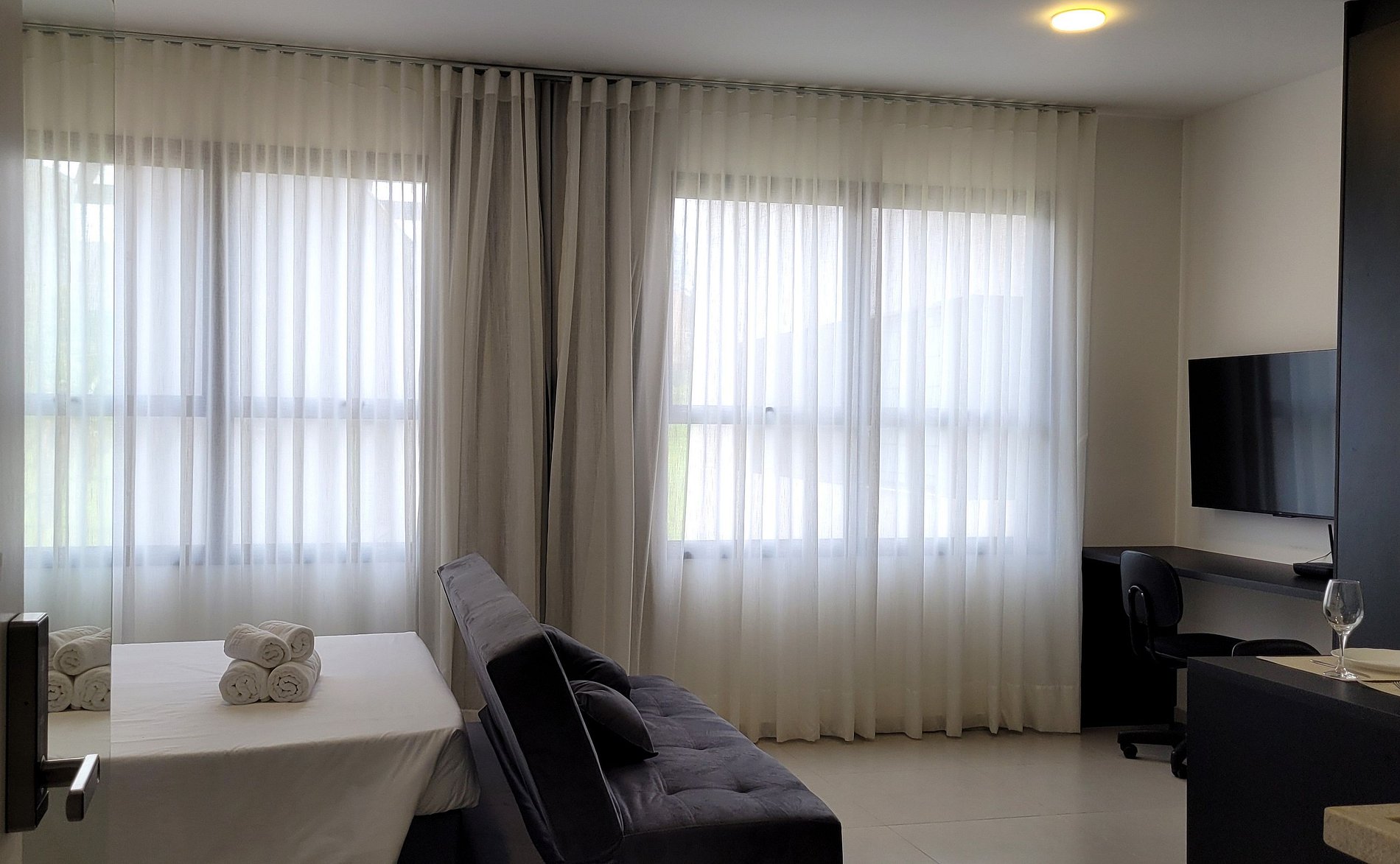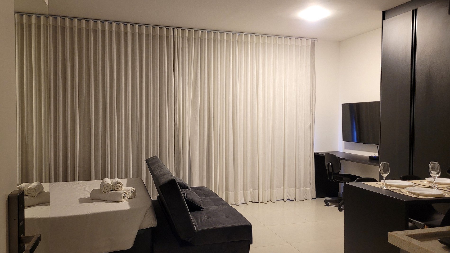 O check-in virtual precisa ser feito antecipadamente para acesso ao prédio e ao apartamento. ACESSO AO PRÉDIO: Reconhecimento Facial. ACESSO AO STUDIO: Senha