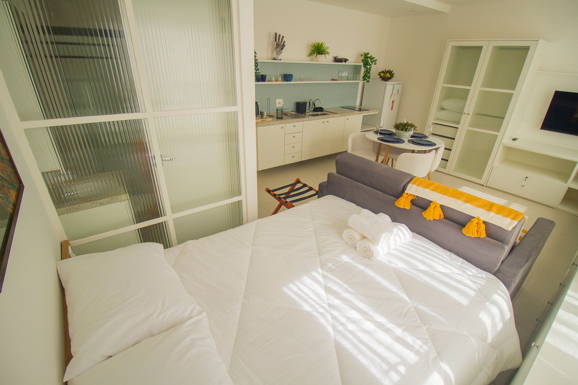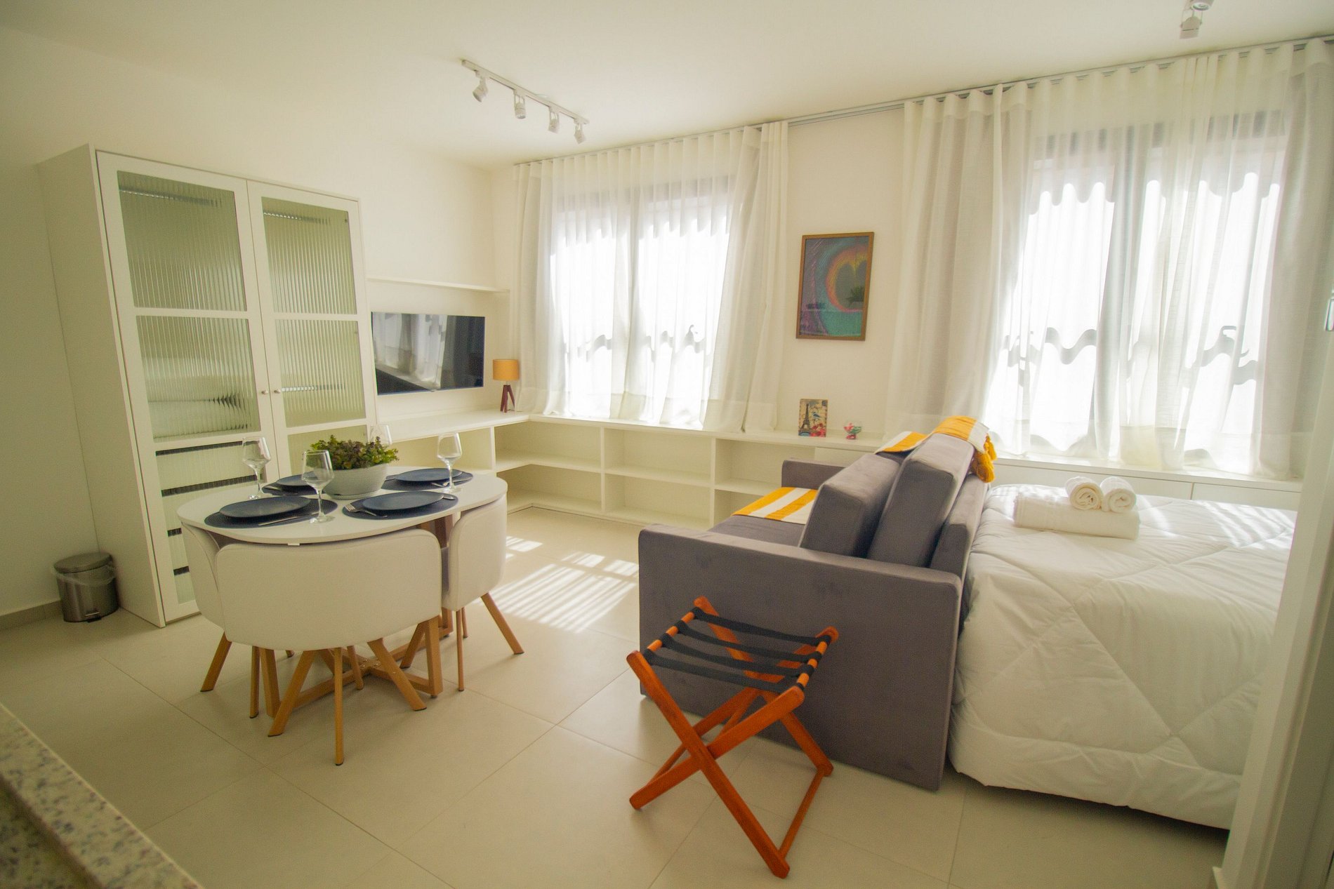 - 1 cama casal e um sofá-cama, que vira a segunda cama de casal (comporta até 4 pessoas)