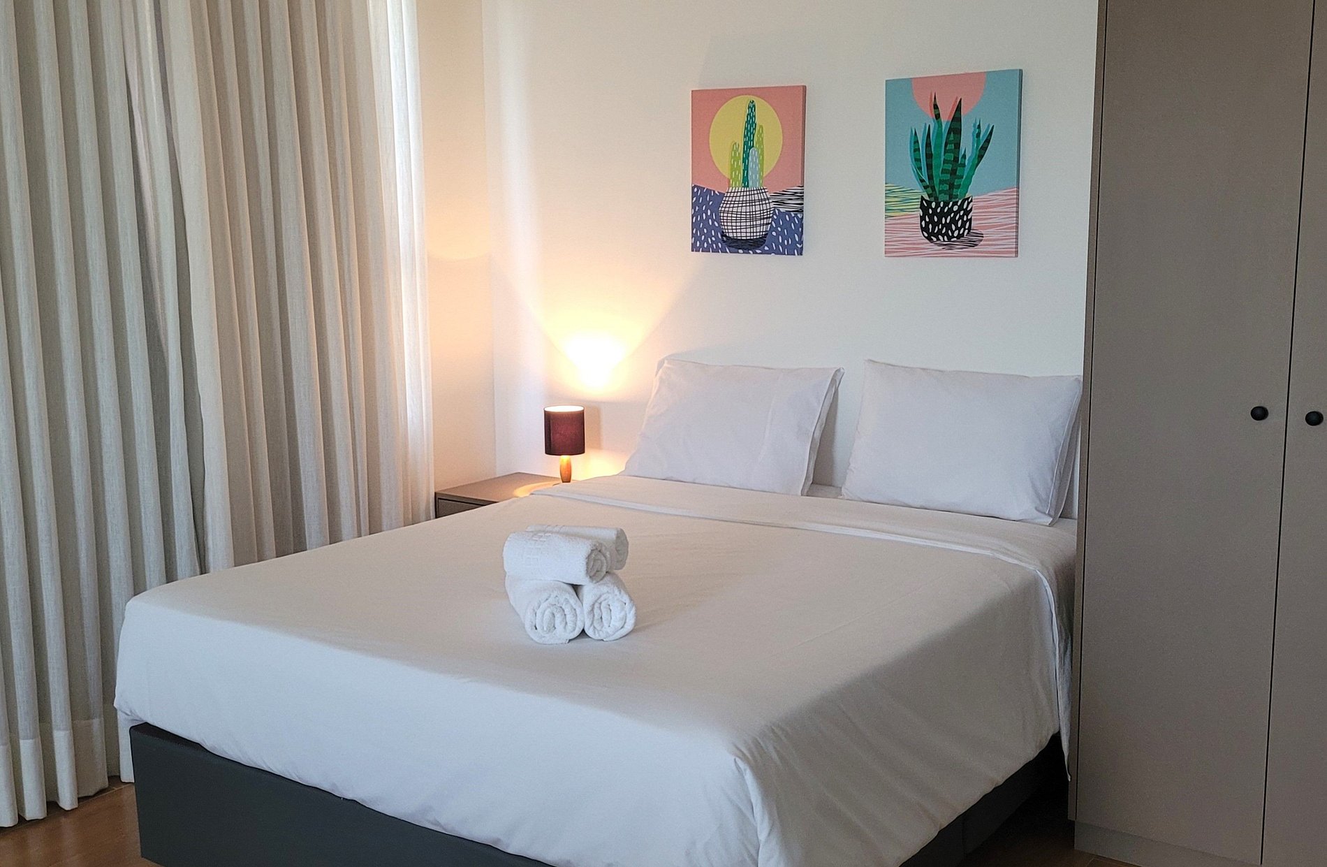 Flat aconchegante e decorado, com sacada e vista. Uma cama queen, banheiro privativo, cozinha.