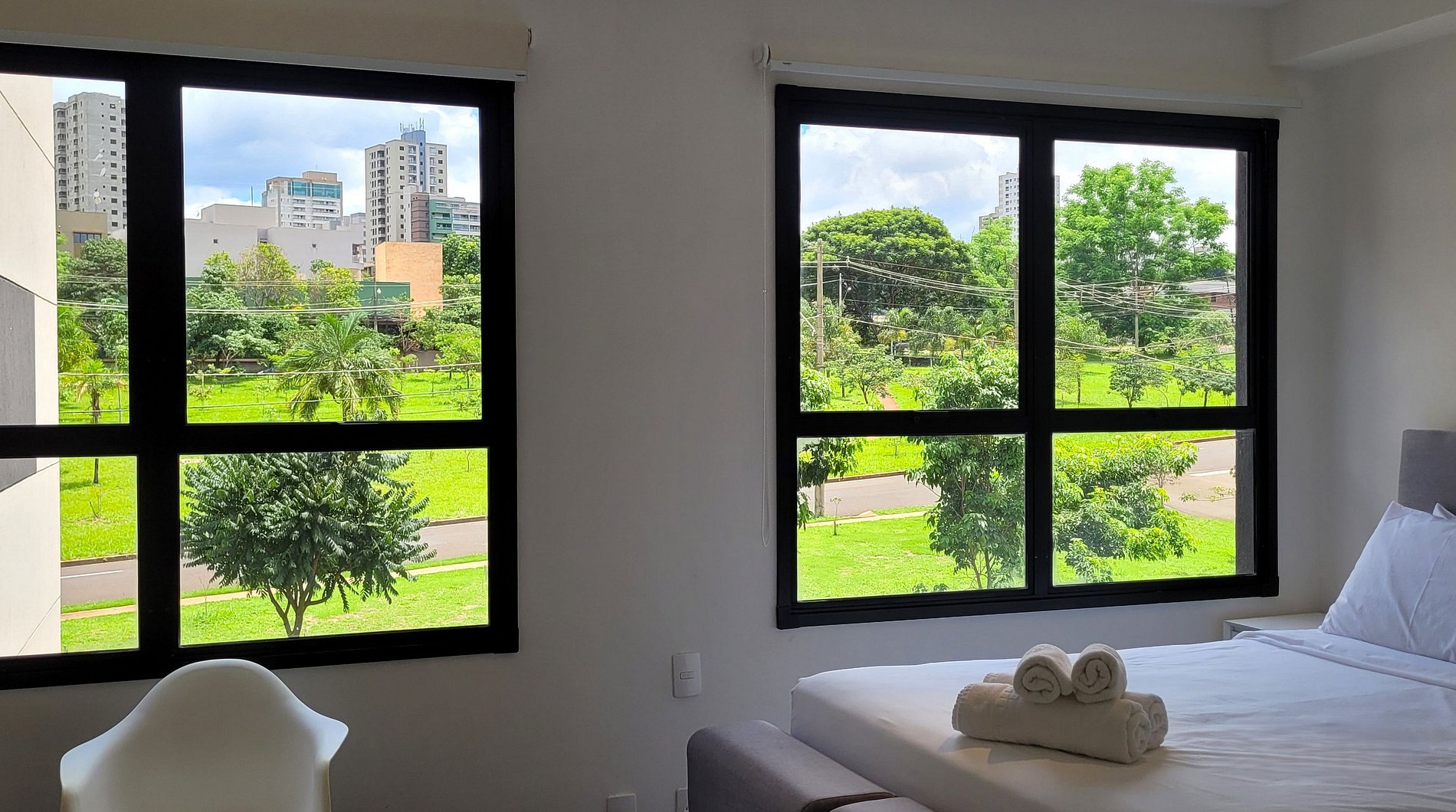 O check-in virtual precisa ser feito antecipadamente para acesso ao prédio e ao apartamento. ACESSO AO PRÉDIO: Reconhecimento Facial. ACESSO AO STUDIO: Senha