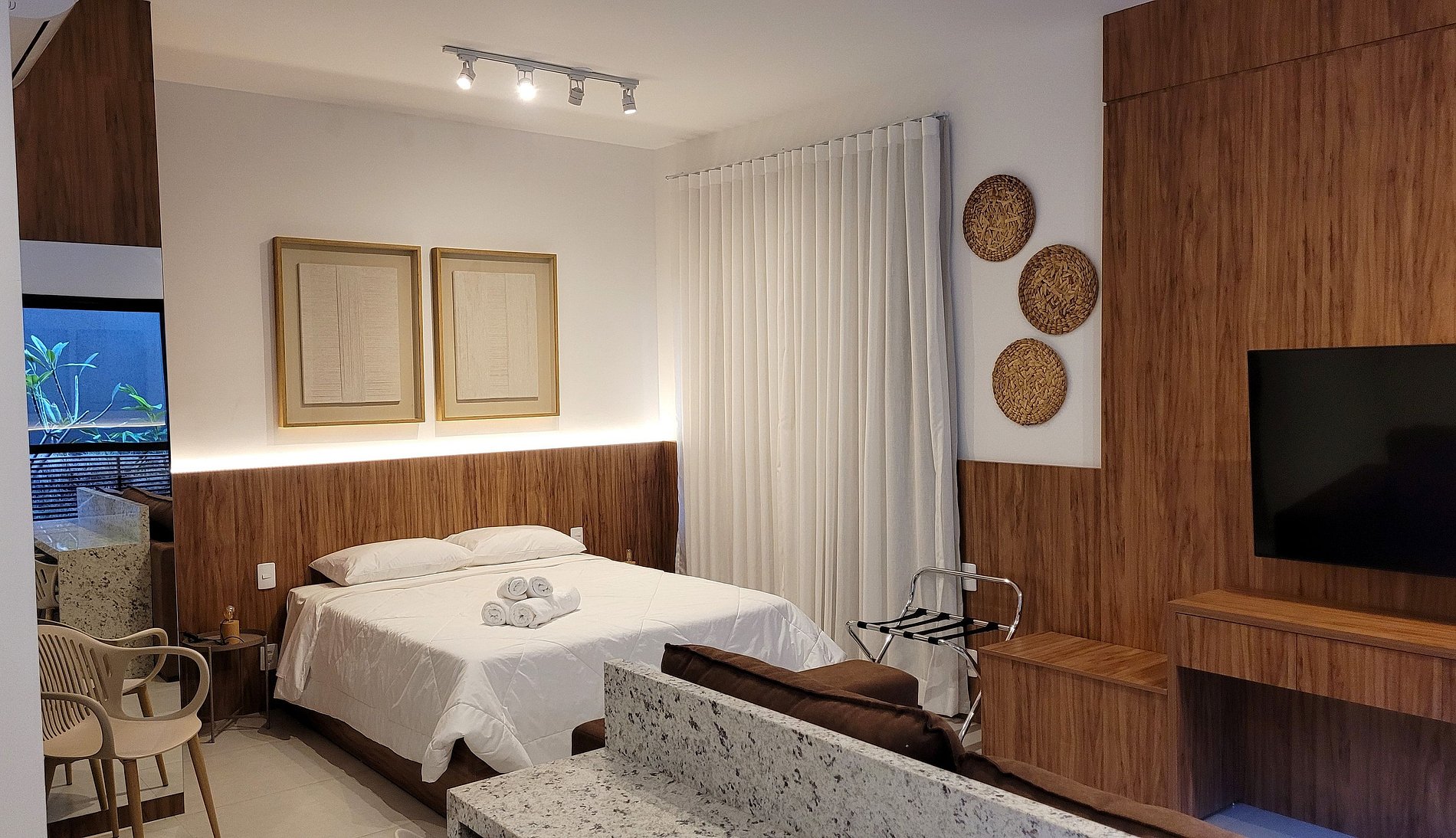 - 1 cama Queen e um sofá-cama (comporta até 4 pessoas)